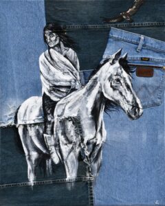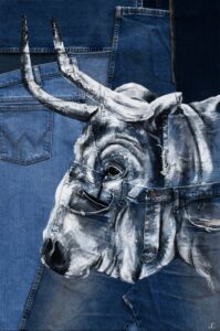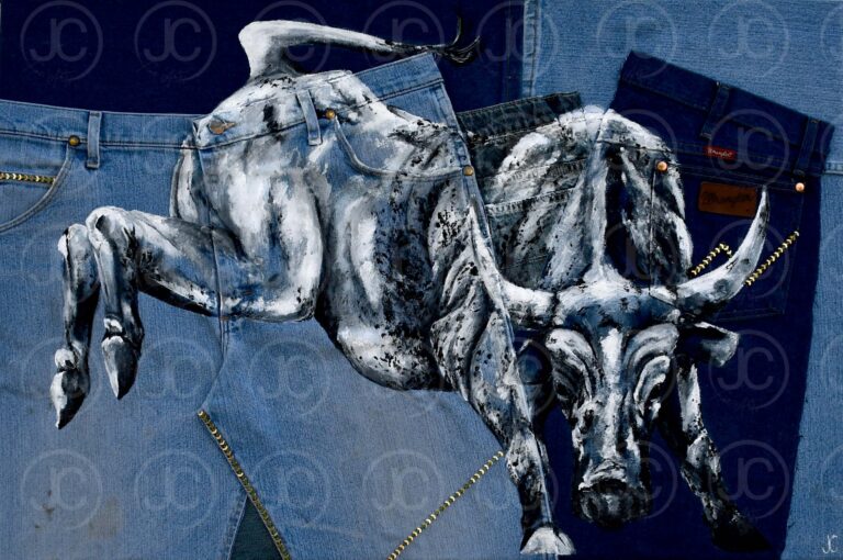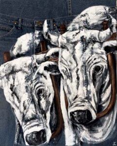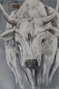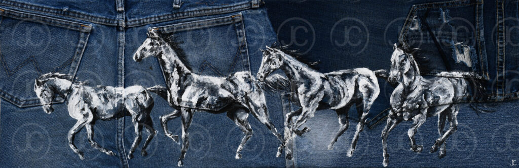 Denim Series The denim collection is a nod to the American West. It is a celebration of grit and responsibility, the stewardship of the farming and ranching lifestyle. "Press On" 30 x 24 Mixed Media Original- OUT OF STOCK "Kicking the Goads" 24 x 36 Mixed Media Original "Restoration" 36 x 48 Mixed Media Original "Watchman" 30 x 24 Mixed Media Original "Number Our Days" 36 x 24 Mixed Media Original "Wild Horses" 12 x 36 Mixed Media Original "Blue Roan Bull" 36 x 24 Mixed Media Original